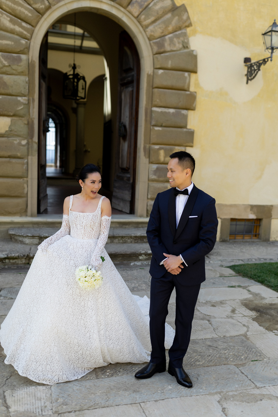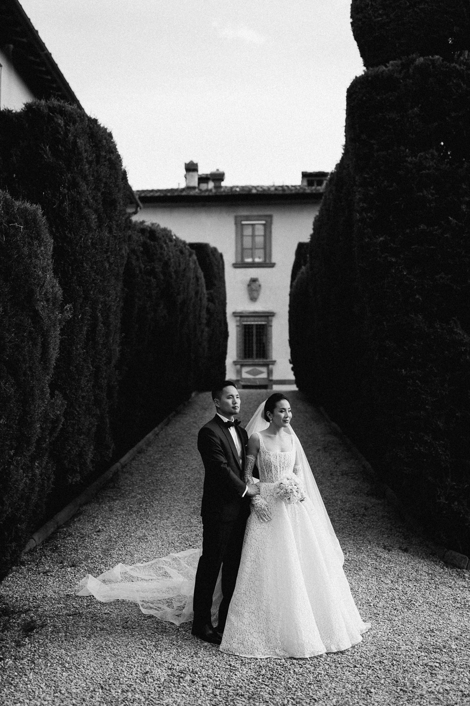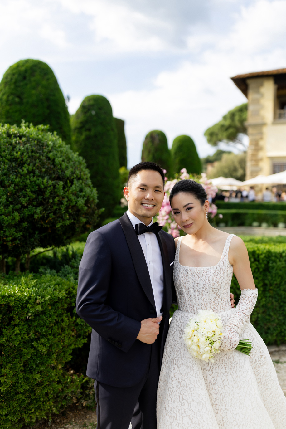 Jamie & Matthew’s romantic celebration at Villa Gamberaia was the embodiment of a Tuscan dream—an elegant, sun-drenched destination wedding in Florence that blended timeless Italian charm with heartfelt moments and impeccable style. Nestled in the hills overlooking the city, this historic 17th-century villa is a sanctuary of Renaissance beauty, with sculpted gardens, serene fountains, and panoramic terraces that seem to float above the Tuscan countryside. The couple’s vision came to life under the refined guidance of Weddings in Tuscany, who curated every detail with effortless sophistication—from the ethereal ceremony under the cypress trees to the candlelit dinner surrounded by statuesque hedges and golden sunset views. Jamie’s graceful glow was perfected by The Porfirio, while her bouquet, a delicate blend of blush garden roses and wild greenery by Flowers Living, mirrored the villa’s natural elegance. Live melodies from Knights Club floated through the air as the newlyweds shared their first dance beneath the stars, followed by a feast of Tuscan flavors by Roberta Catering that delighted every sense. The entire day was a symphony of romance, intimacy, and grandeur—an unforgettable destination wedding in Tuscany that felt both timeless and deeply personal. If you’re dreaming of a luxurious and heartfelt celebration in Italy, let Jamie & Matthew’s unforgettable Villa Gamberaia weddingbe your inspiration—and reach out to begin planning your own Tuscan fairytale.