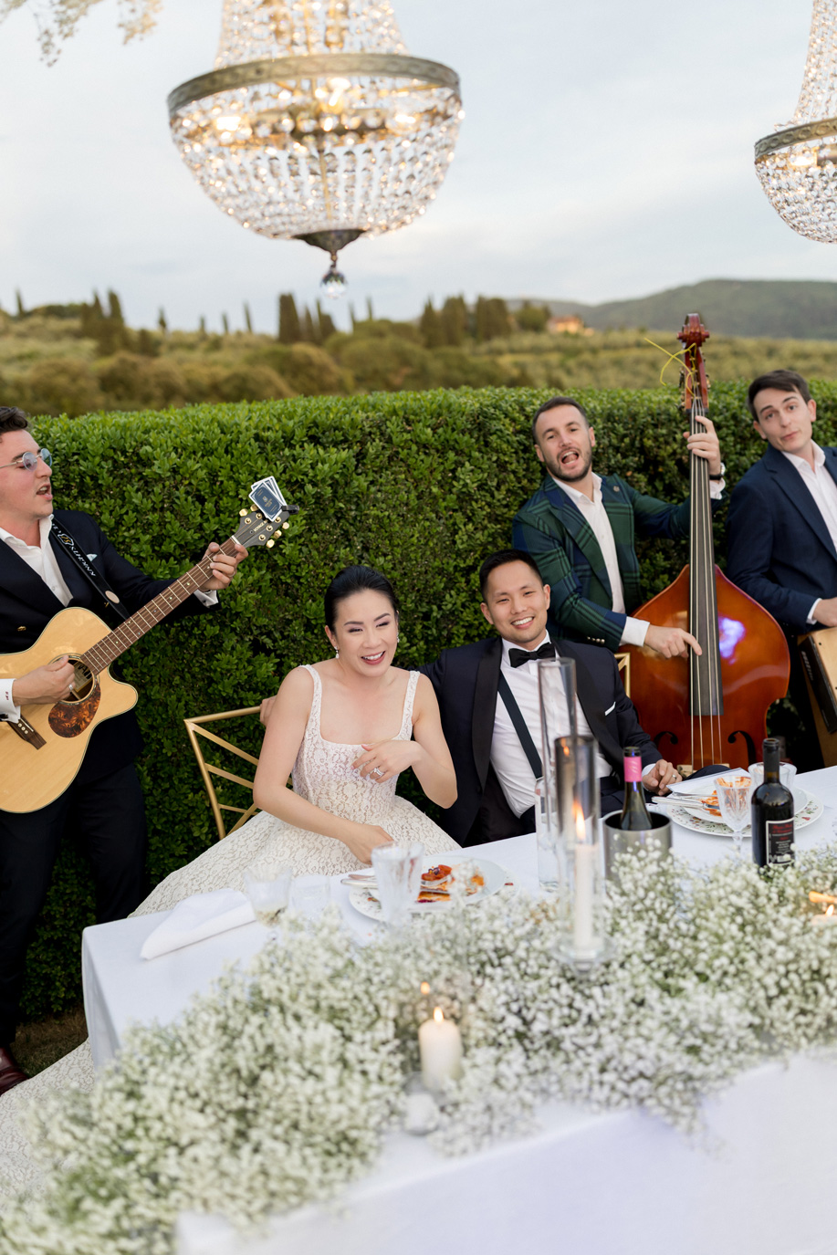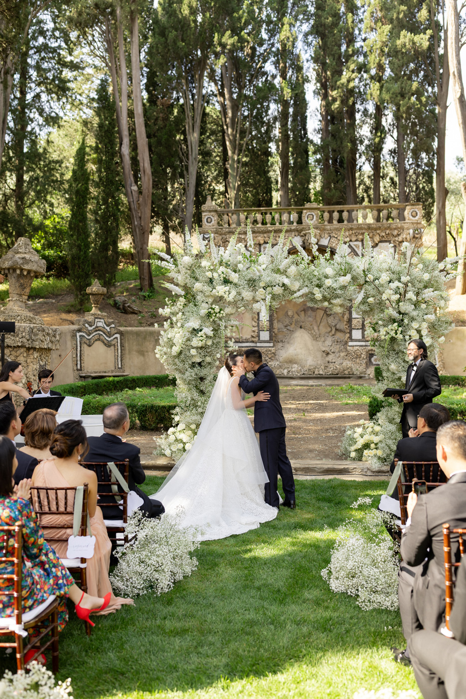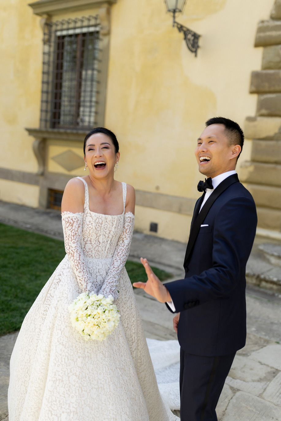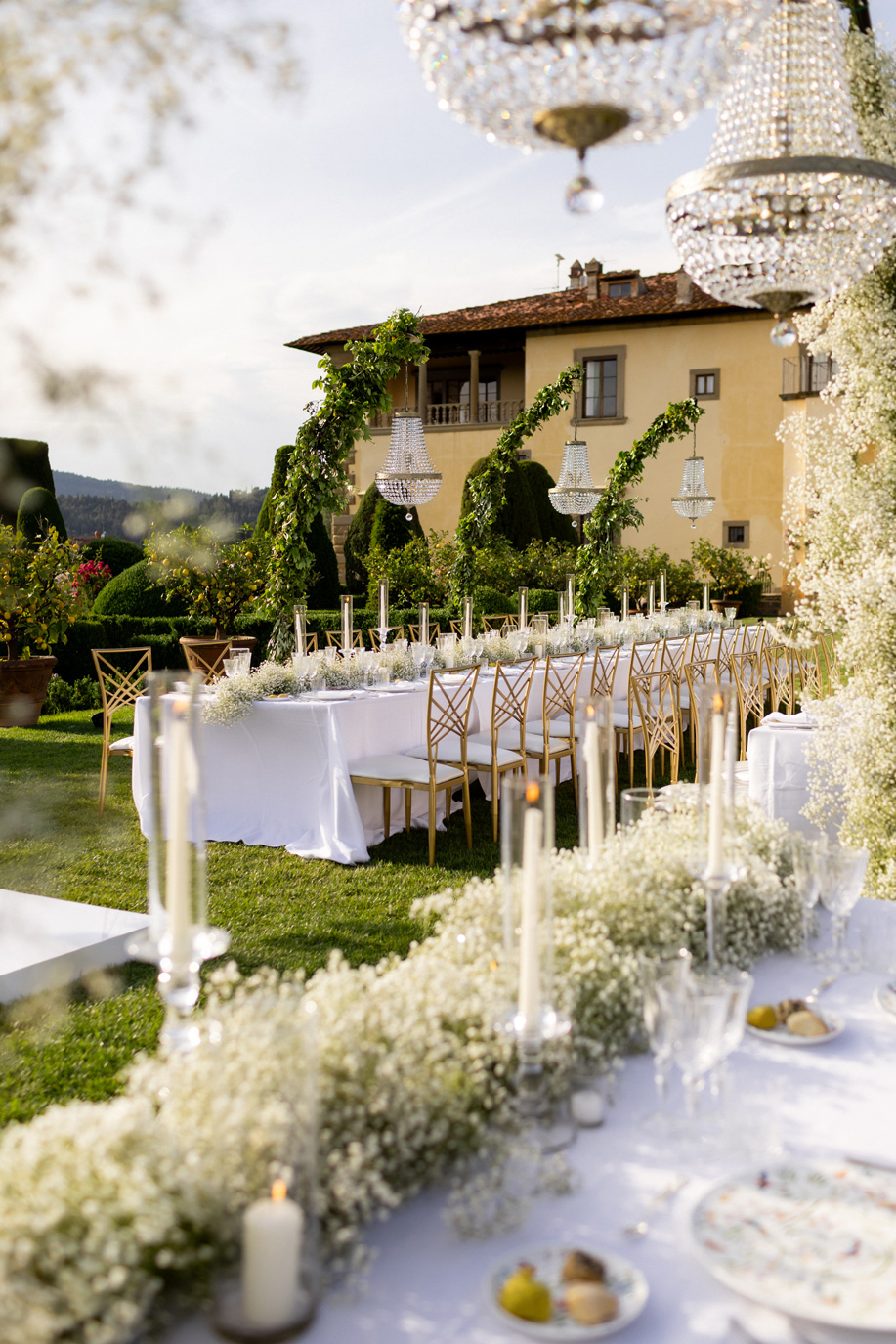 Jamie & Matthew’s romantic celebration at Villa Gamberaia was the embodiment of a Tuscan dream—an elegant, sun-drenched destination wedding in Florence that blended timeless Italian charm with heartfelt moments and impeccable style. Nestled in the hills overlooking the city, this historic 17th-century villa is a sanctuary of Renaissance beauty, with sculpted gardens, serene fountains, and panoramic terraces that seem to float above the Tuscan countryside. The couple’s vision came to life under the refined guidance of Weddings in Tuscany, who curated every detail with effortless sophistication—from the ethereal ceremony under the cypress trees to the candlelit dinner surrounded by statuesque hedges and golden sunset views. Jamie’s graceful glow was perfected by The Porfirio, while her bouquet, a delicate blend of blush garden roses and wild greenery by Flowers Living, mirrored the villa’s natural elegance. Live melodies from Knights Club floated through the air as the newlyweds shared their first dance beneath the stars, followed by a feast of Tuscan flavors by Roberta Catering that delighted every sense. The entire day was a symphony of romance, intimacy, and grandeur—an unforgettable destination wedding in Tuscany that felt both timeless and deeply personal. If you’re dreaming of a luxurious and heartfelt celebration in Italy, let Jamie & Matthew’s unforgettable Villa Gamberaia weddingbe your inspiration—and reach out to begin planning your own Tuscan fairytale.