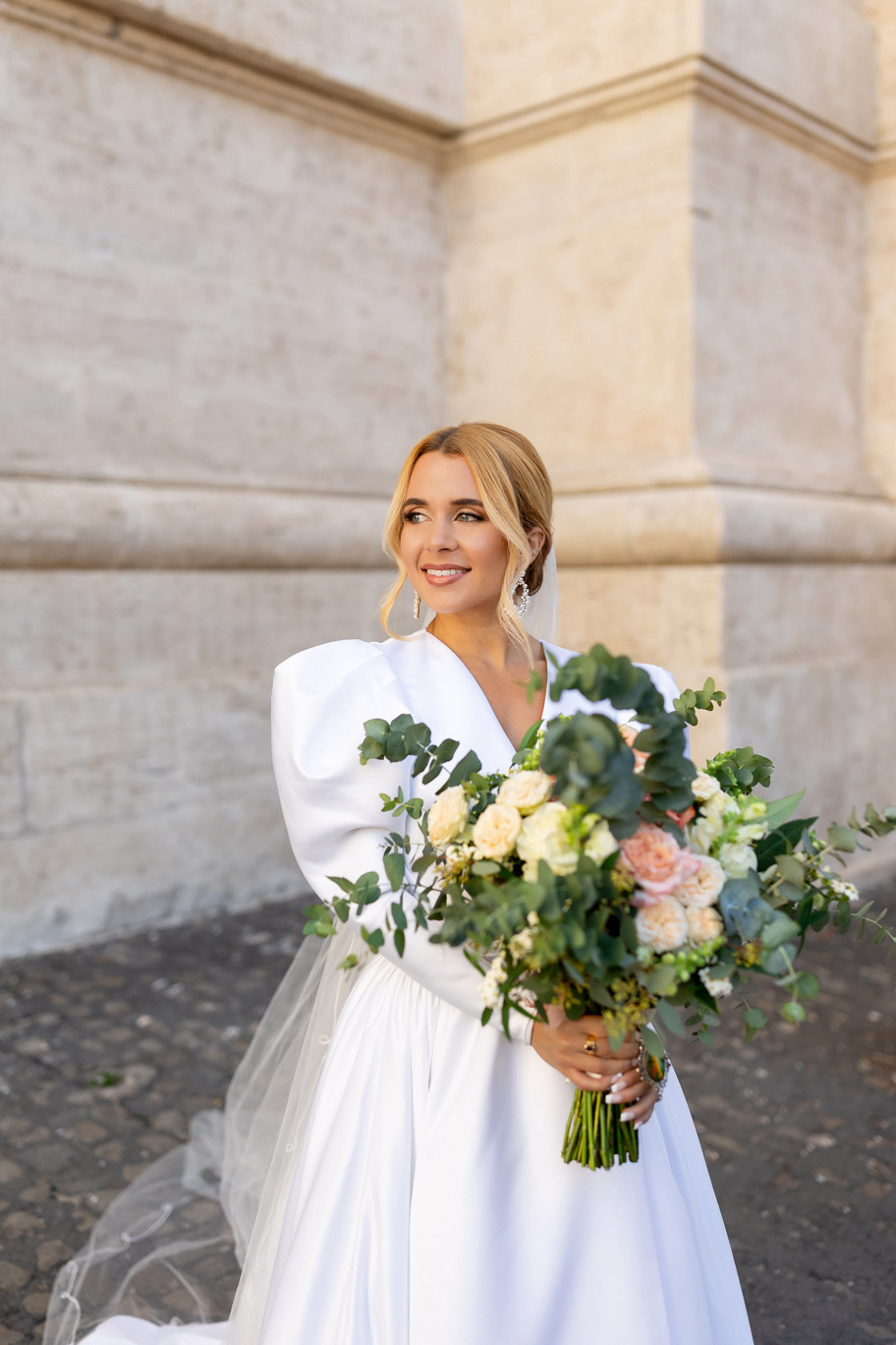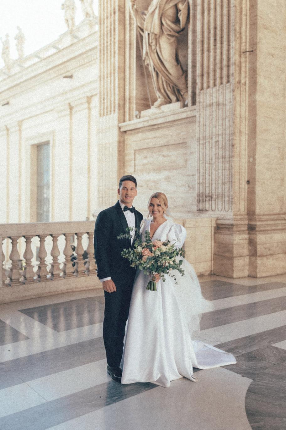 Following their heartfelt ceremony, we captured their wedding portraits across Rome’s most famous landmarks — from the majestic colonnade of St. Peter's Square to the iconic arches of the Colosseum — creating a visual story that blends romance, tradition, and cinematic artistry.