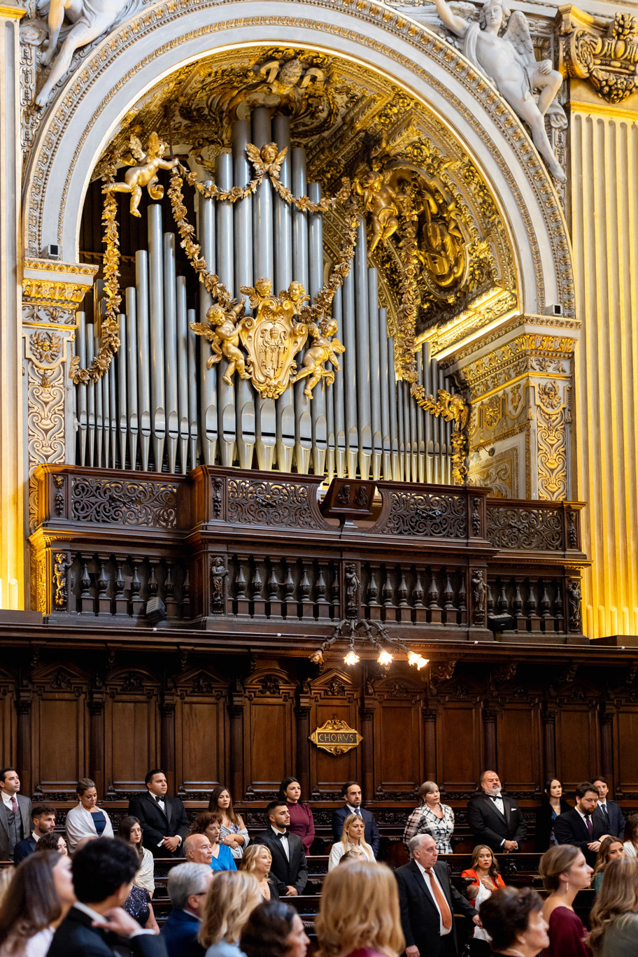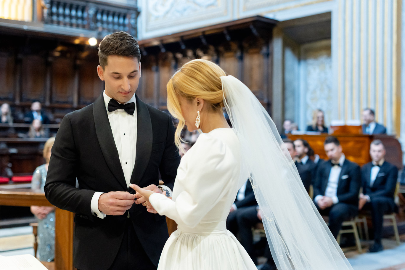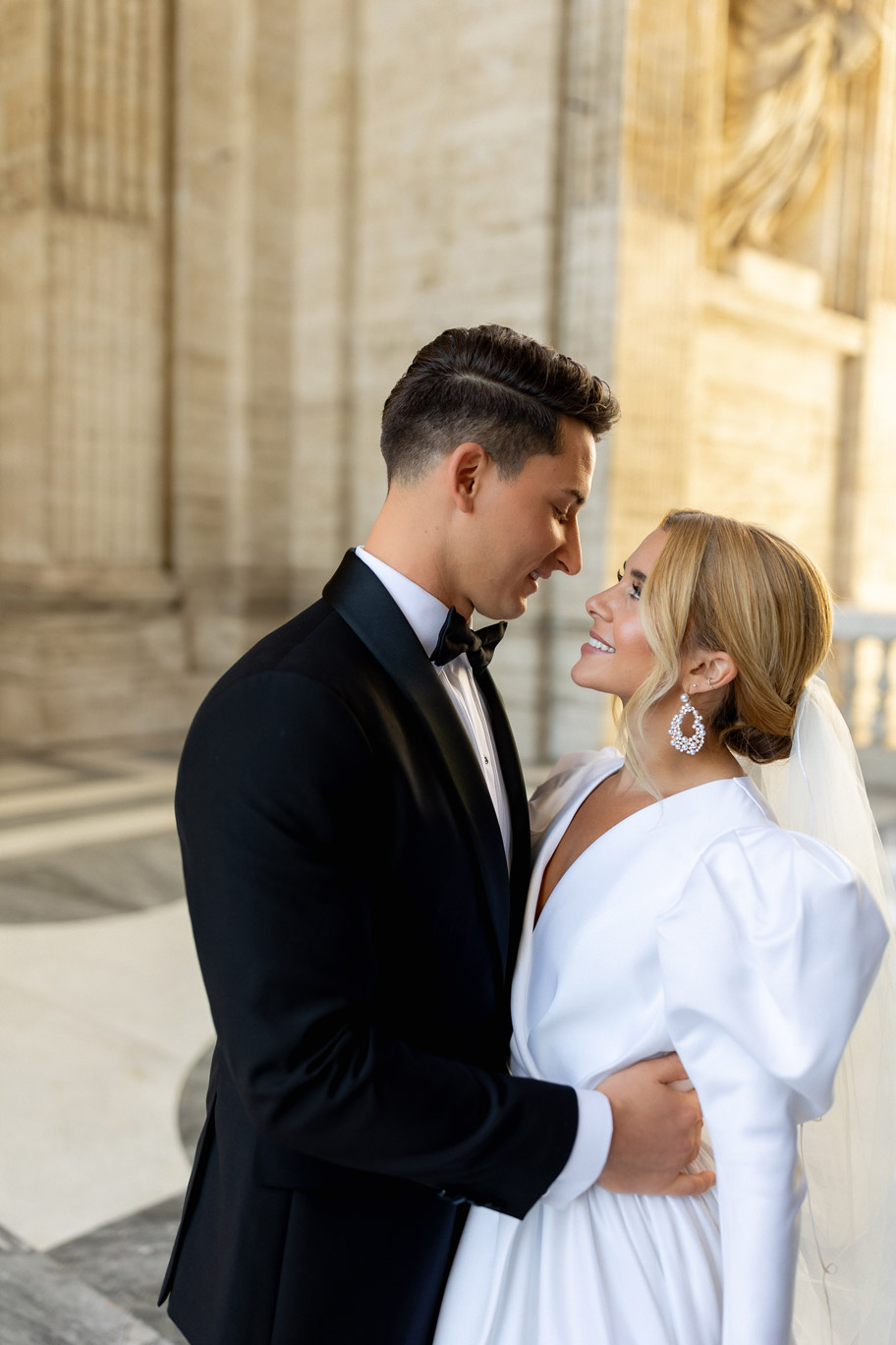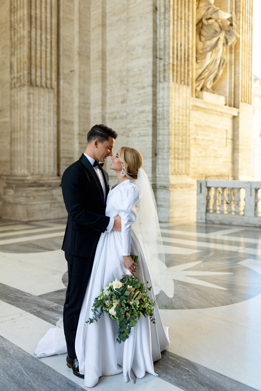 Gabriela & Matthew, a deeply spiritual couple, chose to celebrate their Catholic wedding in Rome at St. Peter's Basilica in Vatican City, one of the most sacred and awe-inspiring wedding ceremony locations in the world. Bathed in warm afternoon light, they exchanged vows surrounded by the timeless beauty and grandeur of this extraordinary basilica.