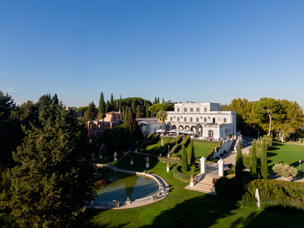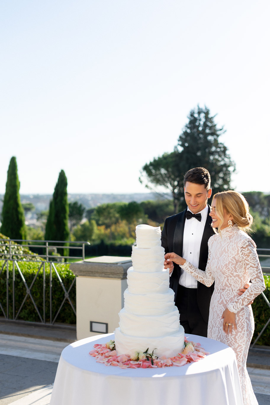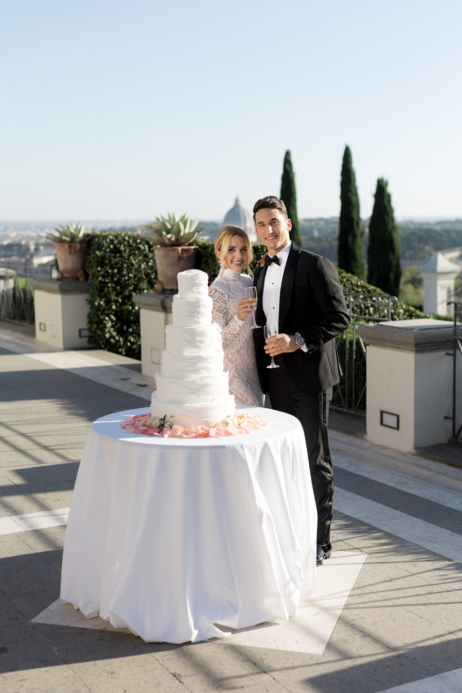 The festivities continued at Villa Miani, where guests gathered for an elegant reception in the villa’s perfectly manicured gardens and stunning interior spaces. Every corner of this luxurious wedding venue offered a picturesque backdrop for candid moments and timeless portraits — from the refined dining halls to the expansive terraces with panoramic views of Rome’s skyline.