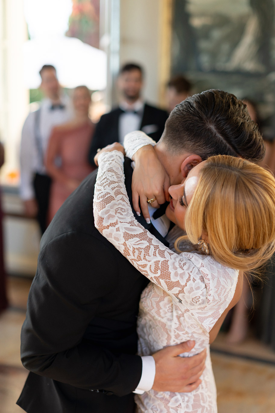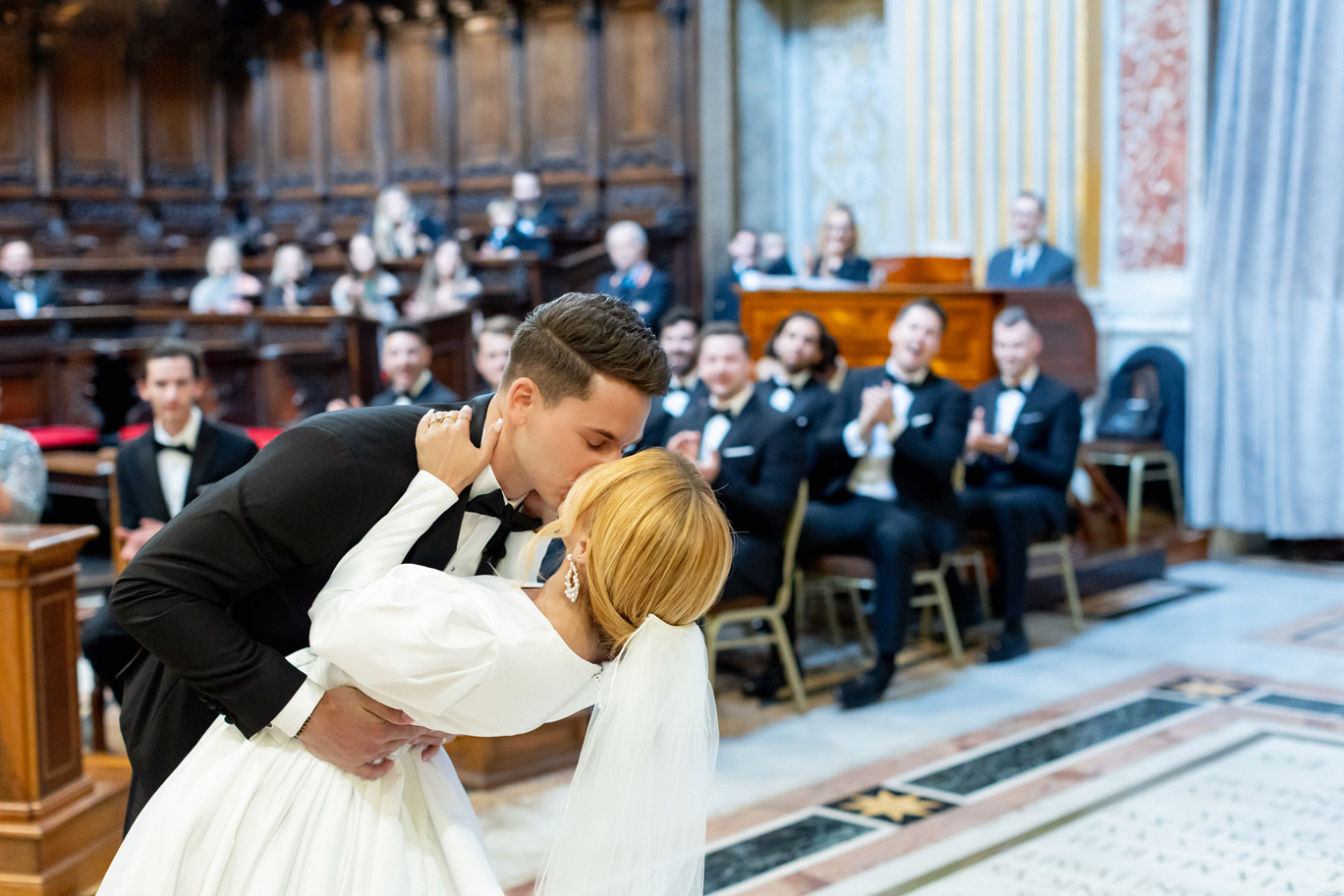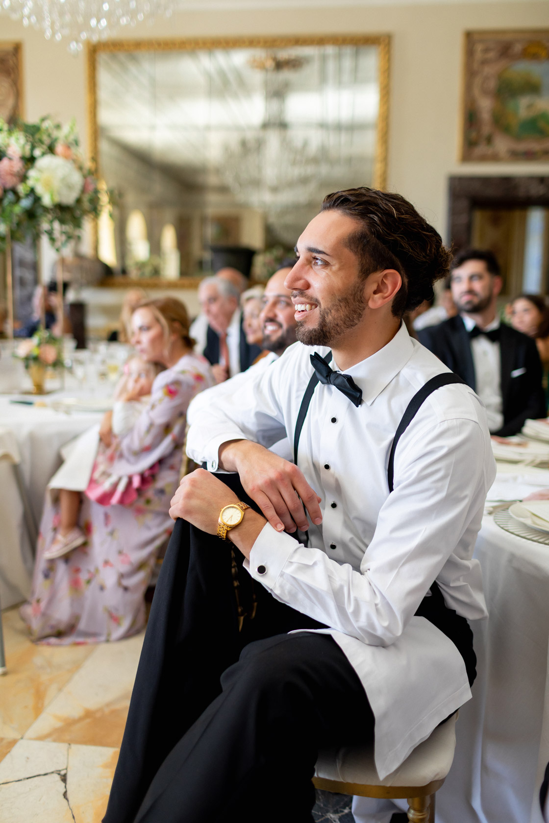 The festivities continued at Villa Miani, where guests gathered for an elegant reception in the villa’s perfectly manicured gardens and stunning interior spaces. Every corner of this luxurious wedding venue offered a picturesque backdrop for candid moments and timeless portraits — from the refined dining halls to the expansive terraces with panoramic views of Rome’s skyline.