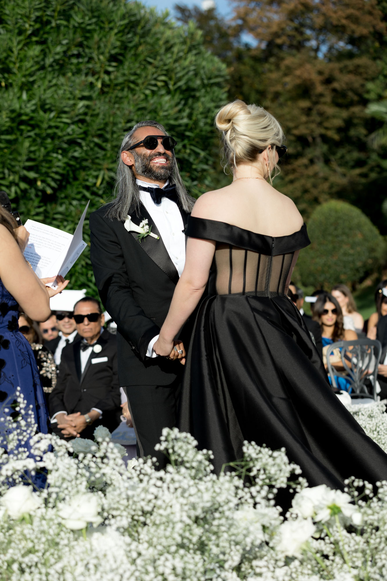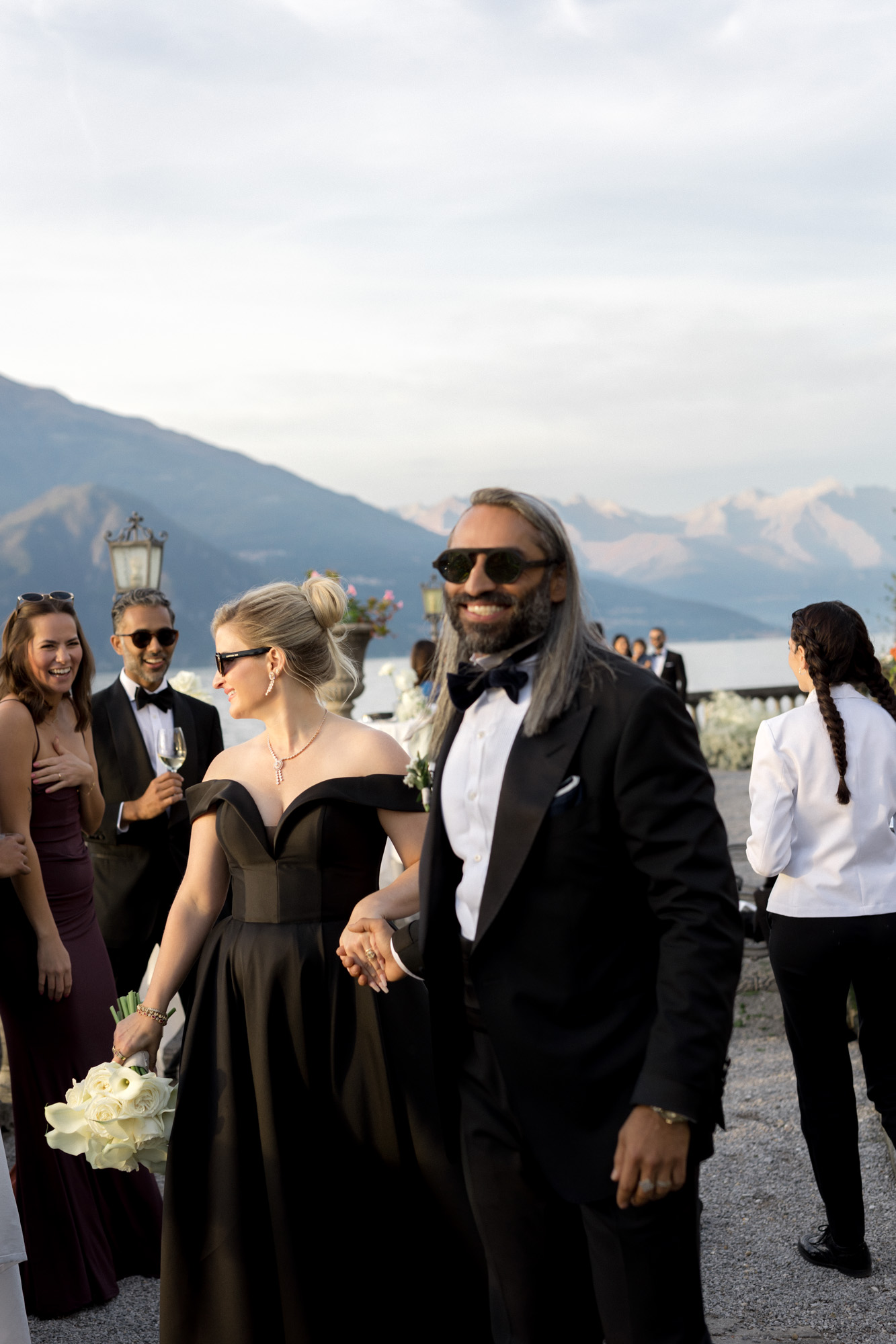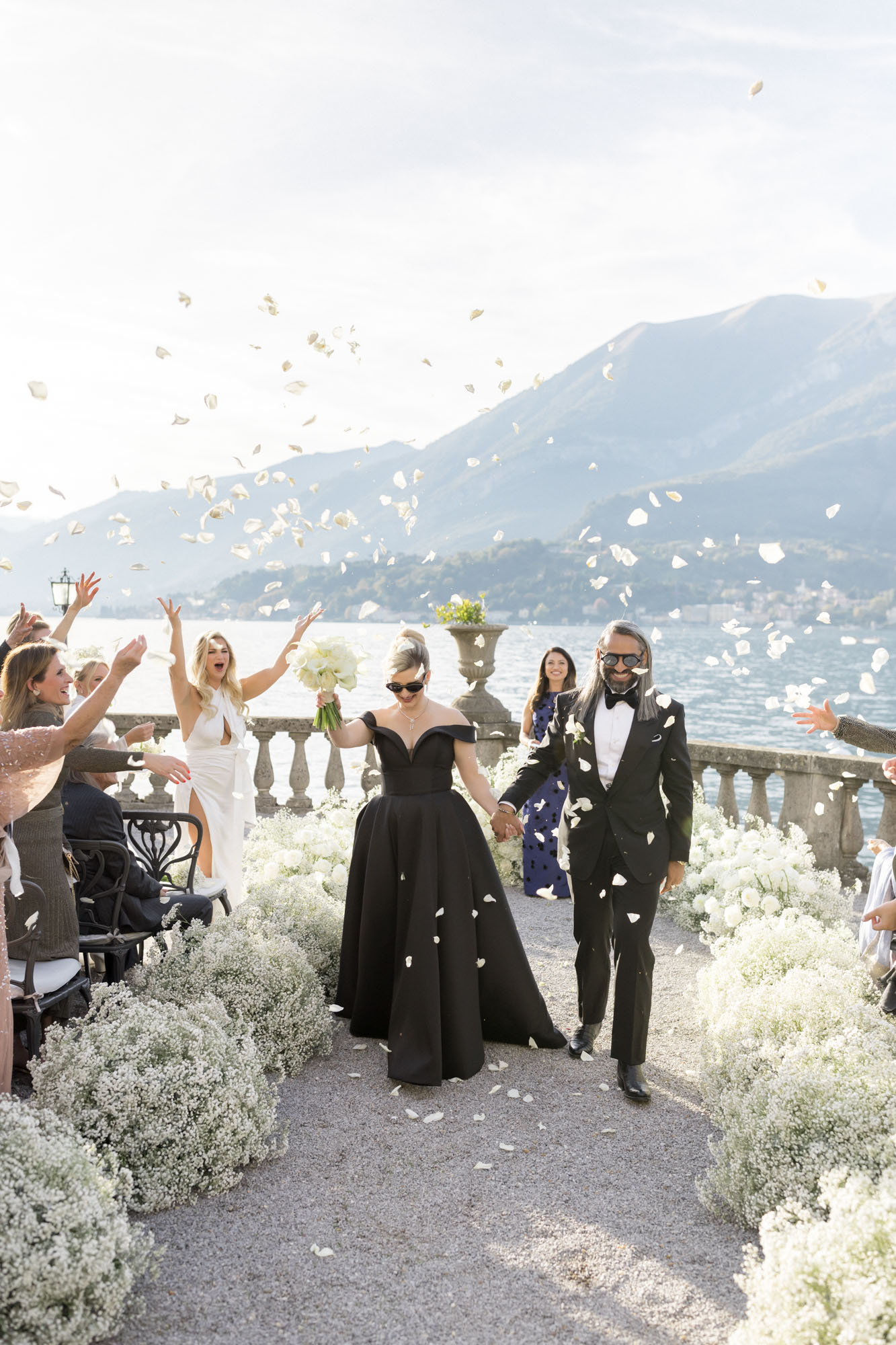 With its sweeping lake views, historic architecture, and lush terraced gardens, Villa Serbelloni is one of the most sought-after wedding venues in Italy. Bonnie and Shehzad brought their bold vision to life with impeccable style — the bride made a stunning entrance in a dramatic black wedding dress, while her bridesmaids wore sleek white gowns. This artistic contrast elevated the entire aesthetic, perfectly reflecting the villa’s unique blend of tradition and contemporary flair.
