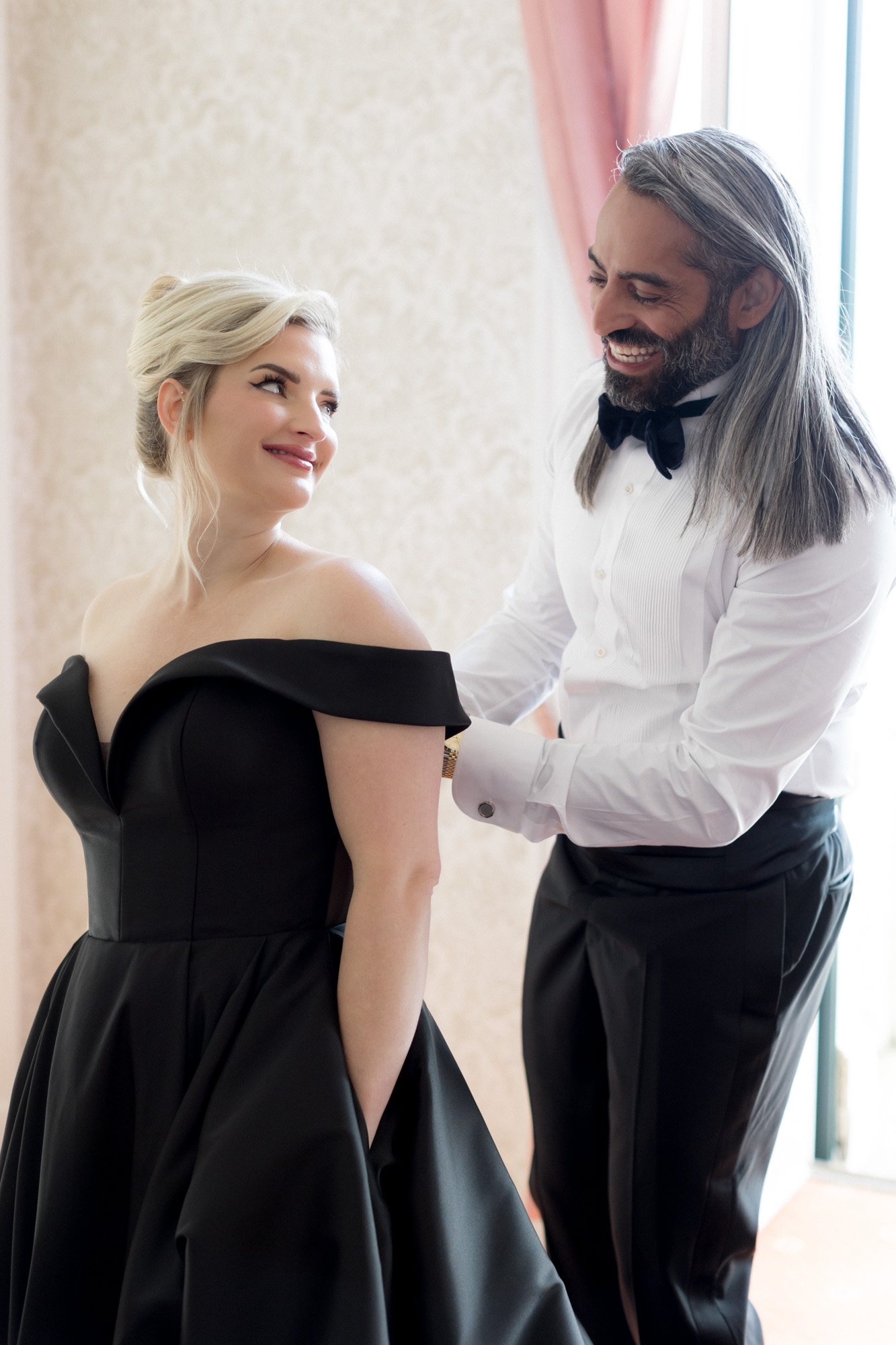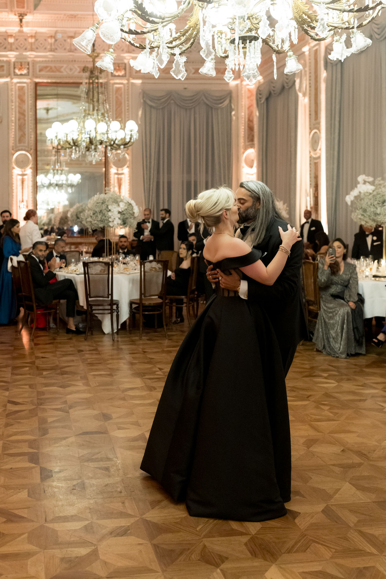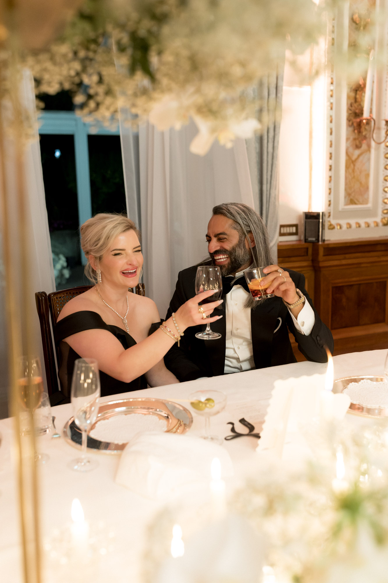 With its sweeping lake views, historic architecture, and lush terraced gardens, Villa Serbelloni is one of the most sought-after wedding venues in Italy. Bonnie and Shehzad brought their bold vision to life with impeccable style — the bride made a stunning entrance in a dramatic black wedding dress, while her bridesmaids wore sleek white gowns. This artistic contrast elevated the entire aesthetic, perfectly reflecting the villa’s unique blend of tradition and contemporary flair.
