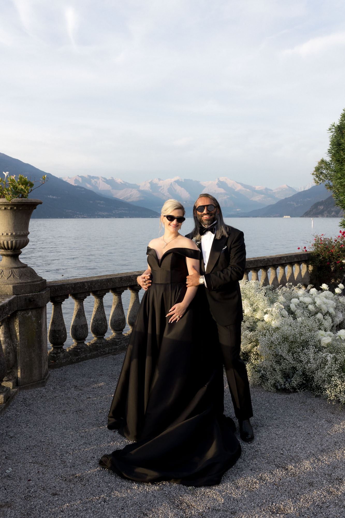 The event was masterfully planned by Boutique Weddings, an elite wedding planning agency on Lake Como celebrated for crafting bespoke Italian weddings that reflect each couple's personal story. The floral design, created with artistry and creativity by The Garden of Love, transformed the venue into a dreamscape of modern romance and timeless charm. Every detail of Bonnie’s bridal beauty was handled by the expert team at The Studio Como, a premier hair and makeup studio specializing in Lake Como wedding hair and makeup.